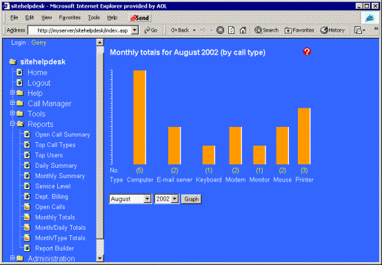 Most frequent calls by categories and caller reporting Time tracking and recharging/ billing reports Call status summary reporting Call volume trend analysis SLA report for user specified periods Graphical analyses Query By Example report generator Enquiries and reports provide drill down into more detail and graphical representations with flexible selections.